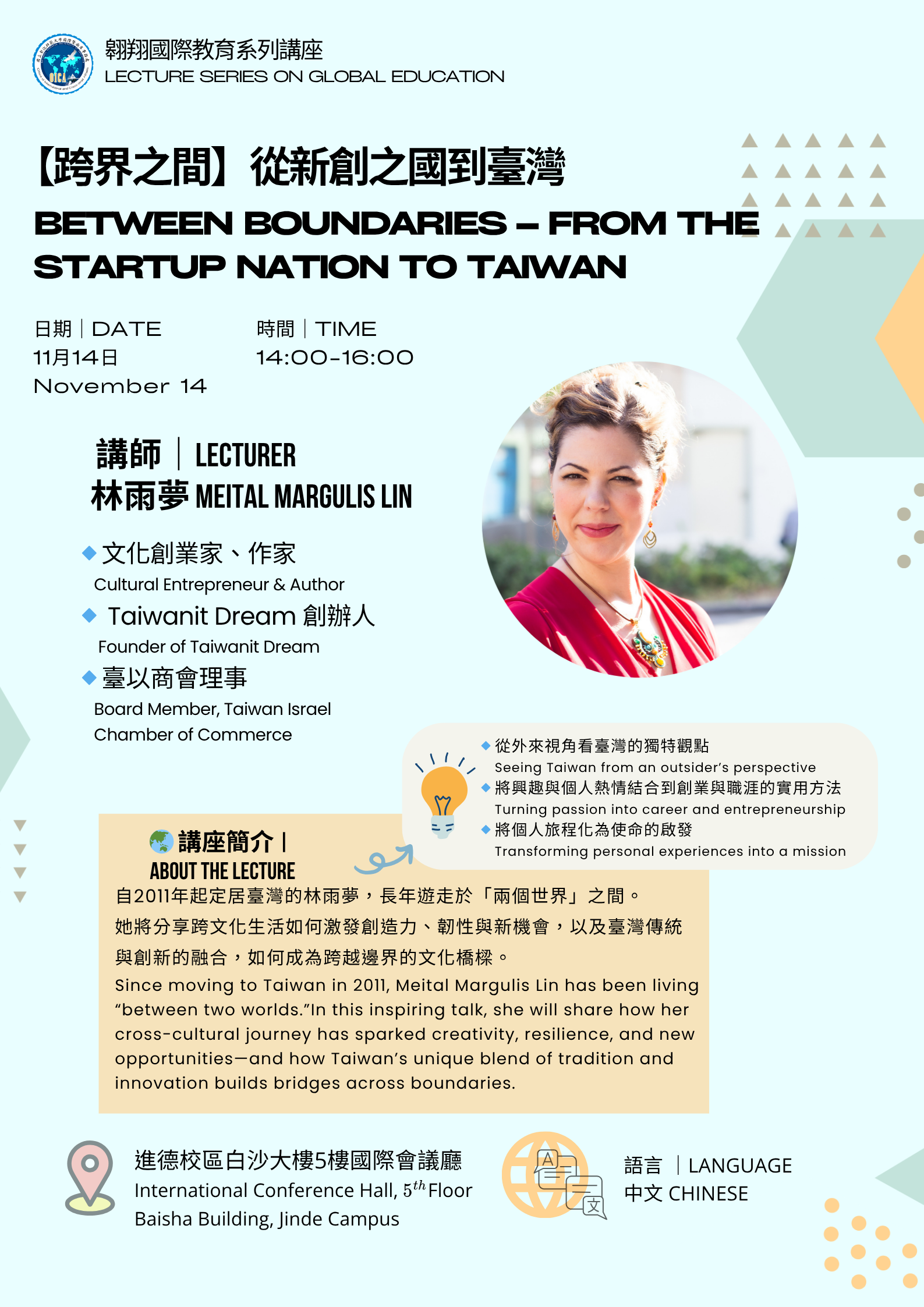 【Lecture Series on Global Education】Between Worlds: From the of Startup Nation to Taiwan