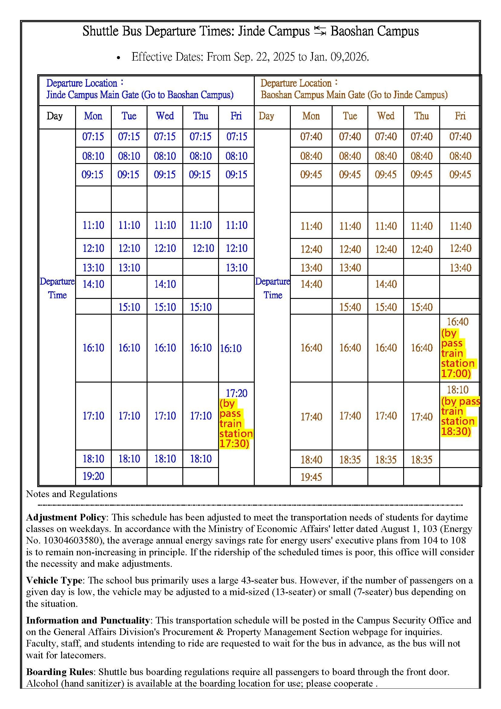 The Office of Student Affairs announced the following information regarding the university shuttle bus and city bus services.