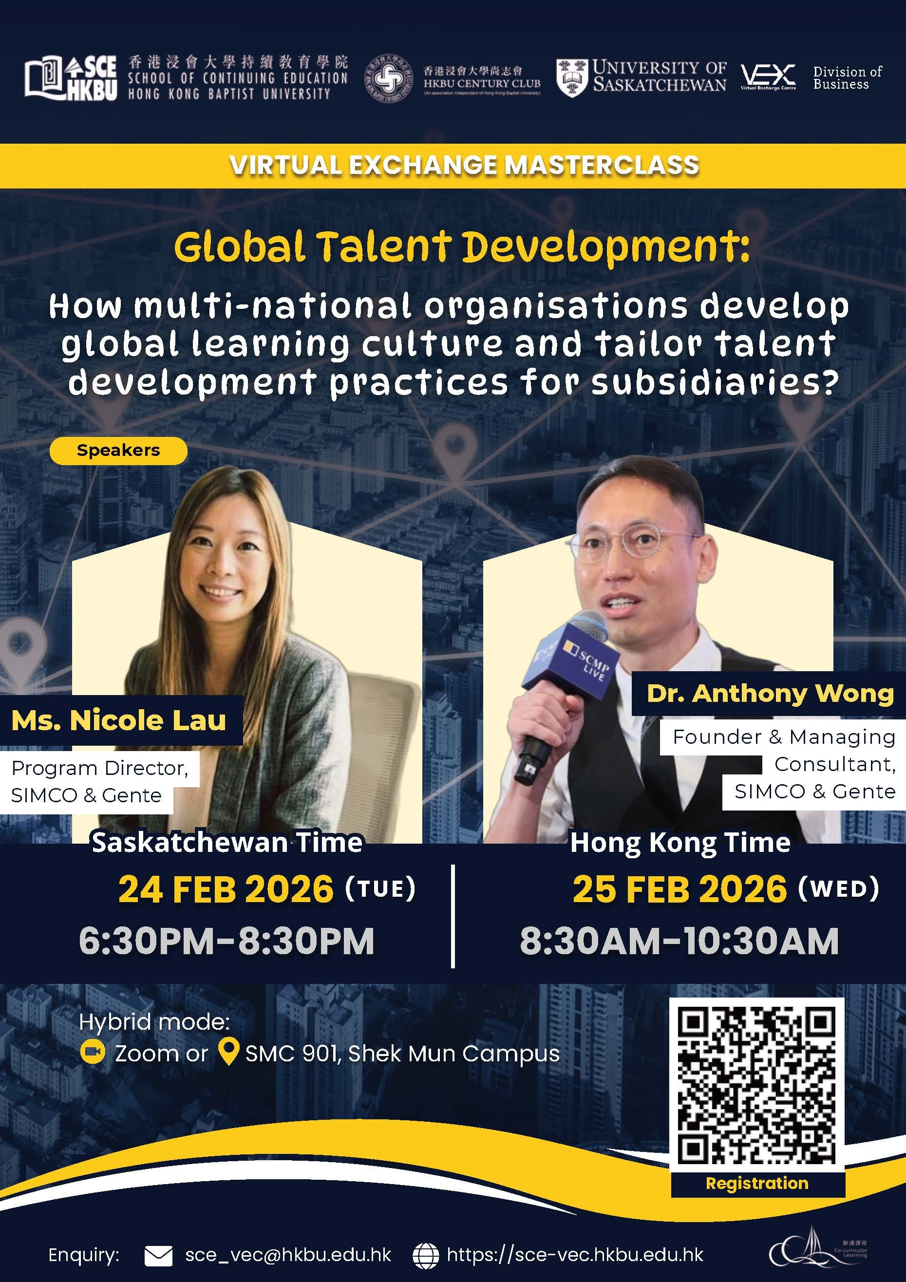 HKBU SCE Virtual Exchange Masterclass on Global Talent Development on 25 Feb 2026 (HKT)